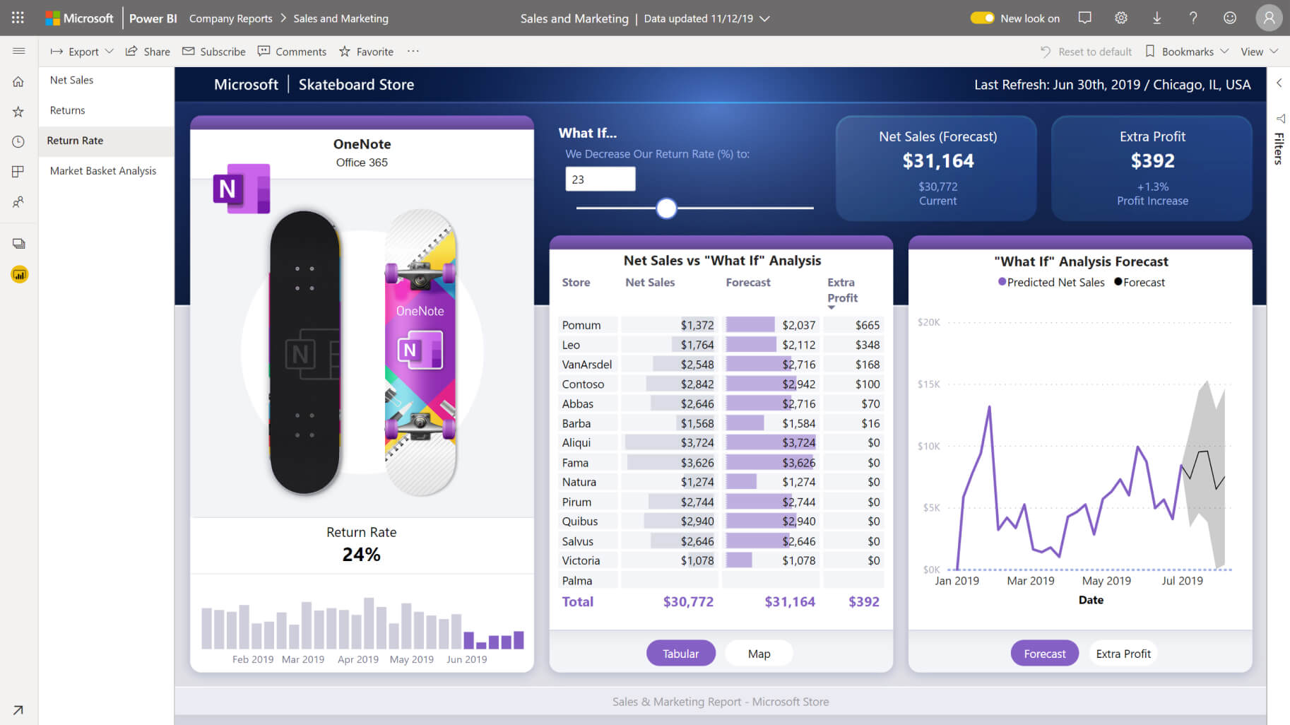 Create a data-driven culture throughout your organization. Easily share and collaborate on interactive data simulations using Power BI Pro for self-service analysis.